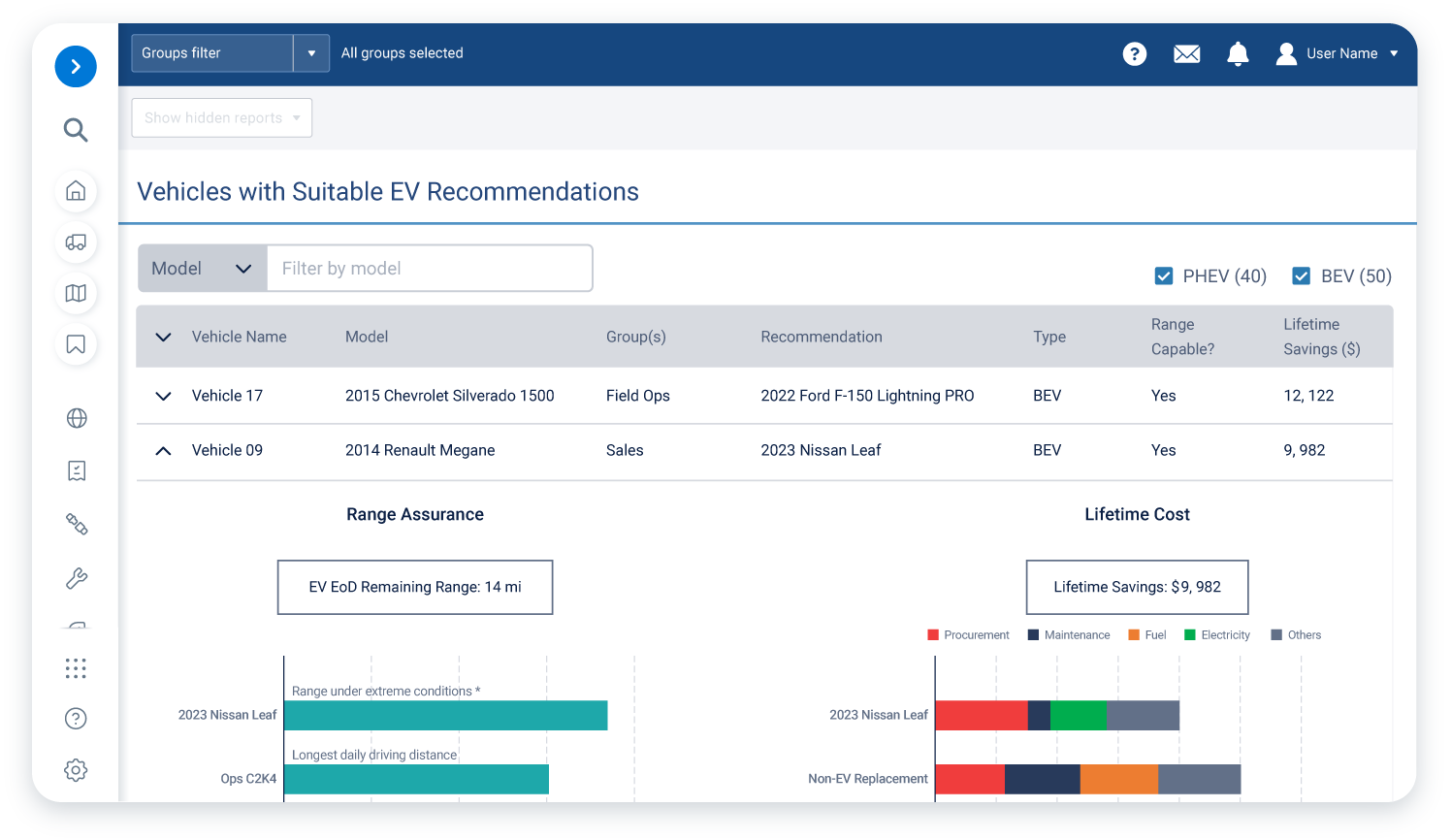 Geotab’s Sustainability Centre empowers fleet managers to monitor, report and take action on key metrics like fuel and emissions, idling trends and electrification potential.